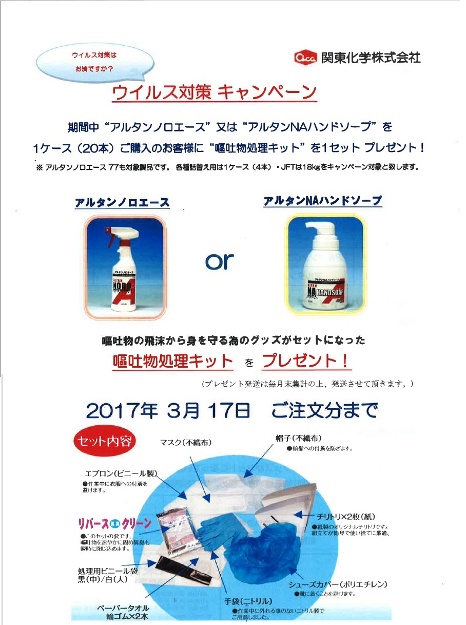 嘔吐物処理キット」を1セットプレゼントいたします!!